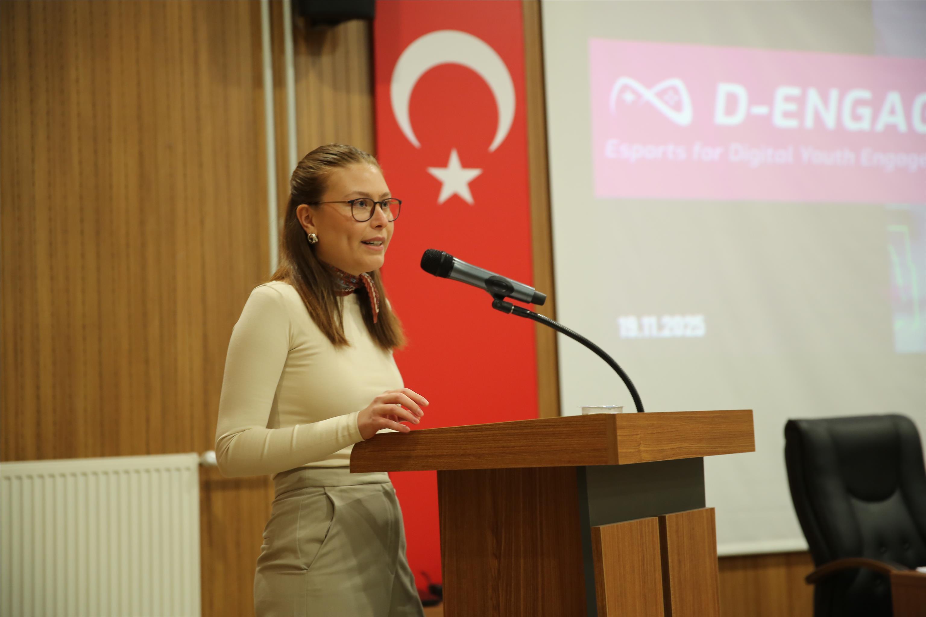 Programın ikinci bölümünde Arş. Gör. Rıdvan Çakır, AB destekli D-Engage projesini tanıttı. Çakır; espor konusunda detaylı içeriklerin yer aldığı çevrim içi bir eğitim platformunu projenin temel çıktısı olarak geliştirdiklerini, bu platformdan lisans ve lisansüstü öğrenciler, mezunlar, antrenörler ve eğitimcilerin yararlanabildiğini aktardı. Katılımcılar, oturum sonunda kayıt adımlarını, değerlendirme ölçütlerini ve eğitim sonunda elde edebilecekleri AB onaylı sertifikayı gelecekteki mesleklerinde nasıl kullanılabilecekleri hakkında detaylı bilgi edinmiş oldu.
